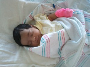 Unfortunently, Layla had to have emergency surgery done on Friday. She’s been vomiting at almost every feeding, so that naturally was a major concern. On Friday morning, Sheena took her to the doc and he did a quick ultrasound wherein which they found a small blockage below her tummy. Apparently it’s not common, but it was a very simple surgery. Luckily all went well and Layla’s back to her normal routine of eating, pooping and sleeping… and looking cute through the whole process!