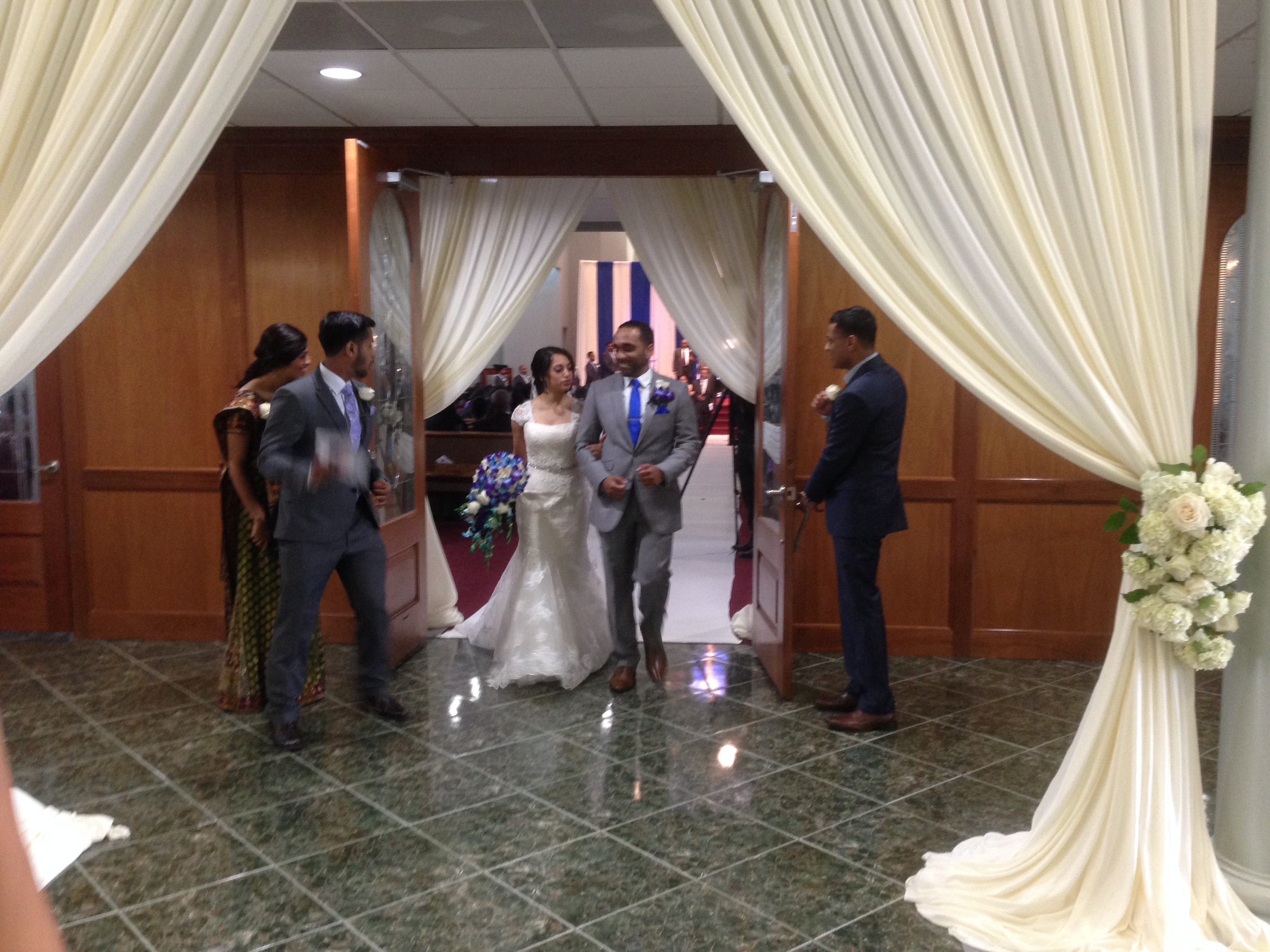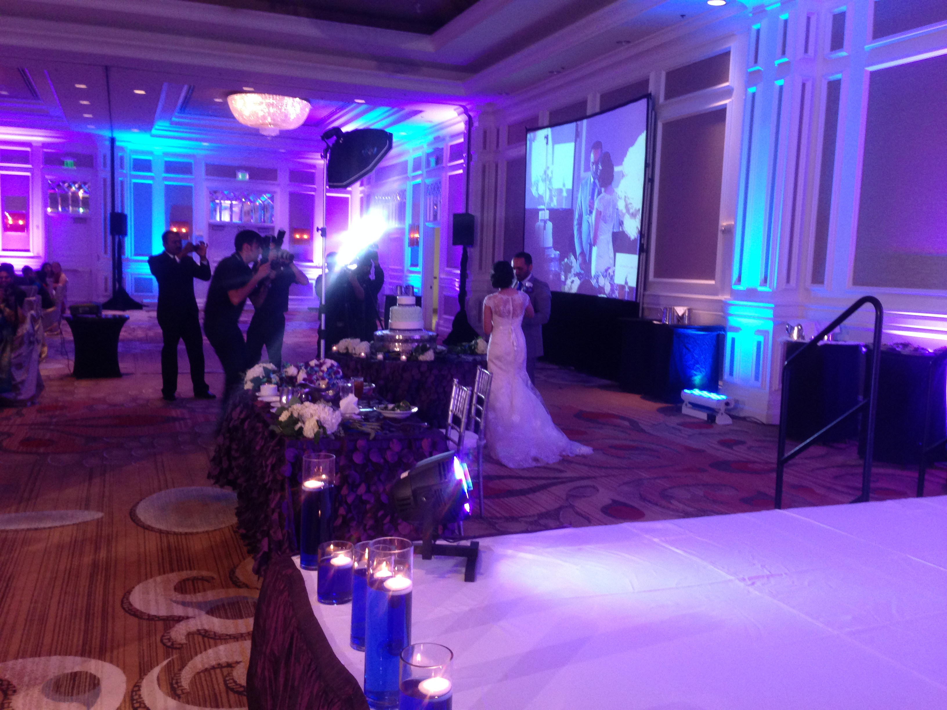 The reception went very smoothly as well.  The place looked awesome.  The Sugarland Marriott is already a really nice venue, but when you dress the ballroom up with lighting and drapes, it transforms the place into something even nicer!