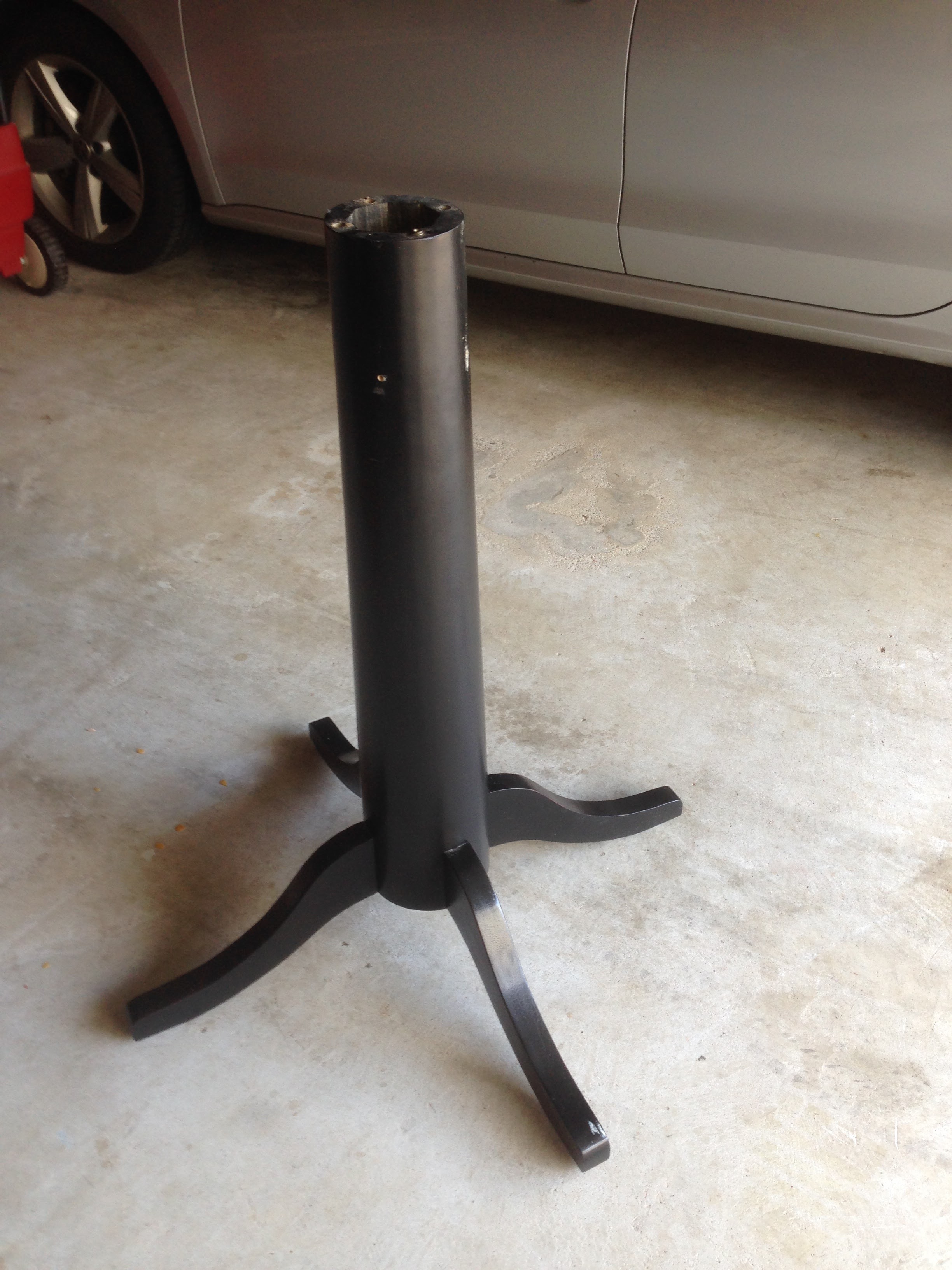 The first step was to disassemble and bring the leg and base plate to the garage. I then took the base plate off the leg.