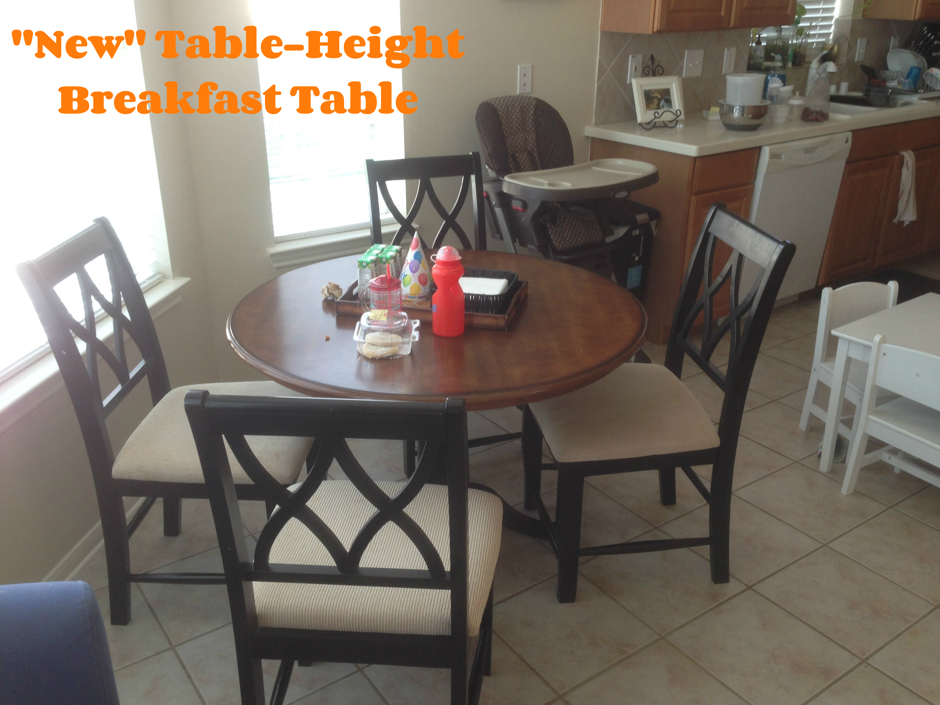 A long time ago, Sheena and I bought a pretty cheap, counter height breakfast table.