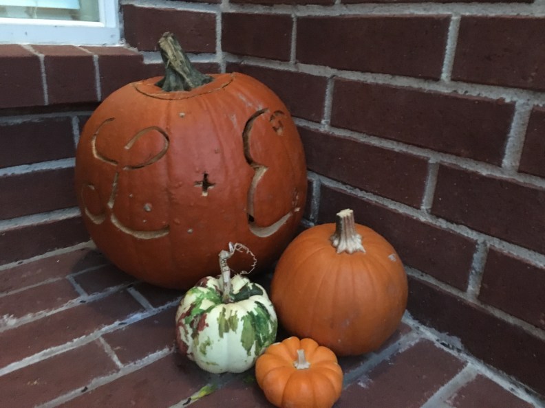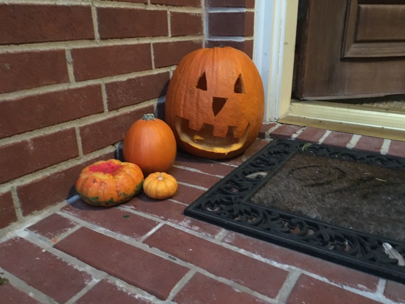 Then I brought it to the front of the house to join Ezra, Layla, and Sheena’s pumpkins.
