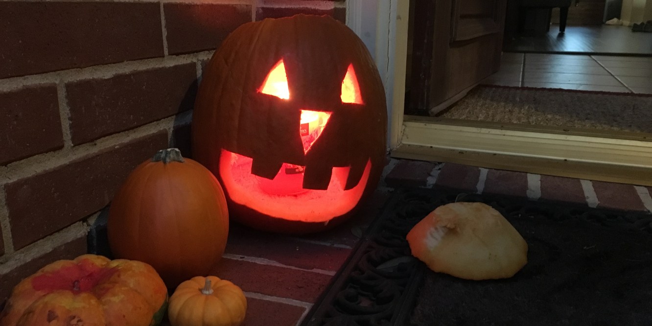 Sheena got fancy and carved an “L” and “E” in her pumpkin.