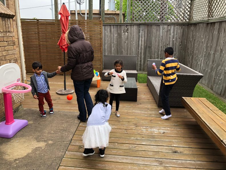 Although it was cold, the kids still wanted to play outside. Bubbles to be exact.