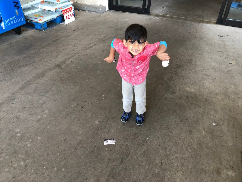 Sunday, we did our usual of going to church and then HEB. When we got to HEB, Layla noticed something on the floor of the entry.